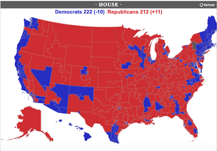 Kết quả bầu cử hạ viện vẫn còn thiếu một vài ghế hoặc chưa đếm xong, hoặc đang thưa kiện. Tuy nhiên, chắc chắn một điều là phe CH đã nắm đa số trên 28 tiểu bang, nghĩa là nếu hạ viện bầu tổng thống, TT Trump sẽ thắng khi ông chỉ cần 26 phiếu.