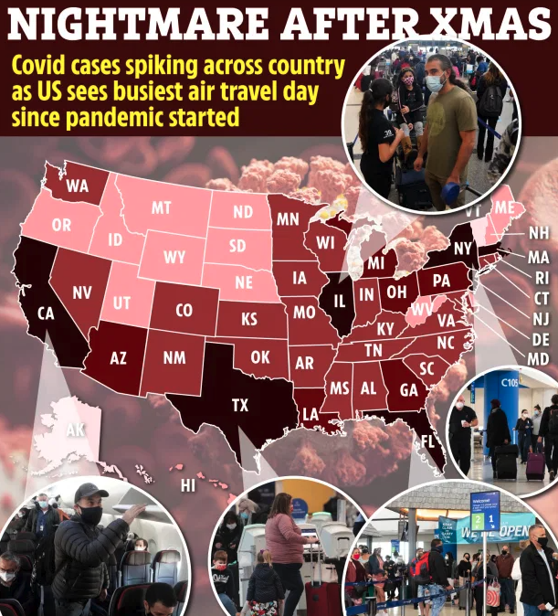 Con số này cao nhất từ ngày COVID bắt đầu tấn công nước Mỹ và các biện pháp cấm cung được ban hành hồi tháng 4. Chính phủ Mỹ ước lượng trong dịp lễ cuối năm nay, sẽ có khoảng 85 triệu người đi du lịch hay về thăm gia đình bằng máy bay, xe lửa và xe hơi. Chứng tỏ một số rất lớn dân Mỹ quá mệt mỏi với các hù dọa về số người bị nhiễm bị chết vì dịch COVID, đã coi như pha việc dịch COVID đang tái phát mạnh trên nước Mỹ cũng như khắp thế giới.