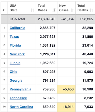 – Hiện nay, Cali đã có gần 3 triệu người bị nhiễm trong khi Texas đã có hơn 2 triệu.