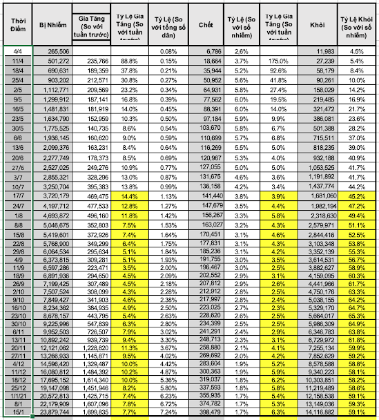– Nhìn chung, tỷ lệ gia tăng mỗi tuần có ổn định, nhưng tỷ lệ chết tăng mạnh.