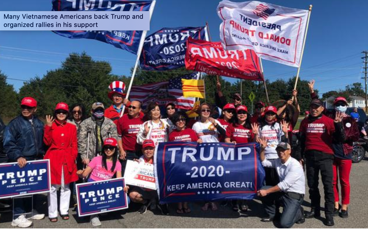 DW nhận định dù TT Trump đã thất cử nhưng cộng đồng người Việt vẫn chưa mất niềm tin nơi ông và vẫn ủng hộ ông rất mạnh.