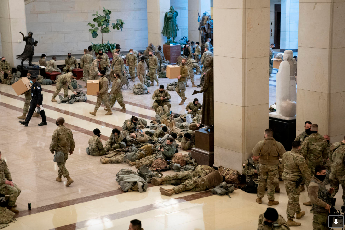 Từ 15.000 tới 30.000 lính Vệ Binh Quốc Gia sẽ được huy động để bảo vệ thủ đô Washington nhân ngày cụ Biden tuyên thệ nhậm chức. Tòa nhà quốc hội, Capitol đã trở thành ‘trại lính’ với cả ngàn Vệ Binh Quốc Gia ngủ dài dưới đất.
