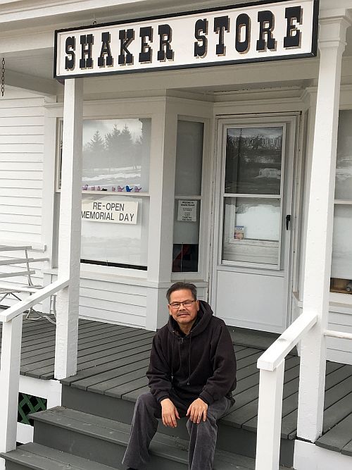 Tôi xin chụp hình, nhưng bà từ chối. Chị tài xế giúp bà June vào nhà rồi trở ra xe. Tôi cố tình đứng đợi để hỏi chị vài thông tin về ngôi làng này dù trước khi đến tôi đã đọc và biết bà June là phụ nữ duy nhất của giáo phái Shaker còn sống sót. Sau một vài phút thăm hỏi ngắn ngủi, chị tài xế cho biết nếu tôi muốn vào thăm nội thất chính của làng thì phải trở lại lúc 10:00 giờ sáng Chủ Nhật. Đây là giờ duy nhất làng mở cửa để khách và dân địa phương vào tham dự cầu nguyện chung với Sister June và Brother Arnold Hadd, hai tín đồ cuối cùng của giáo phái Shaker. Tôi hứa với chị là sang mùa Xuân tôi sẽ ghé lại thăm làng và tham dự buổi cầu nguyện sáng Chủ Nhật.