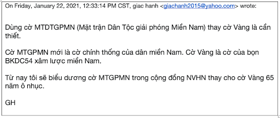 Không hiểu các vị lãnh đạo cộng đồng, các tướng tá QLVNCH, các đảng phái VNQDĐ, Đại Việt, cả trăm diễn đàn chống cộng, các báo, các cụ chống cộng có nhận được hay không mà chưa thấy ai lên tiếng.