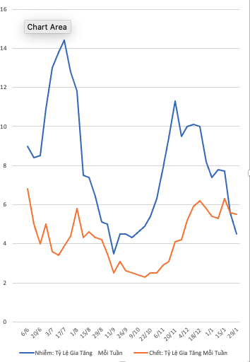 – Tuy nhiên, tính theo tỷ lệ gia tăng mỗi tuần thì COVID đã bị kềm chế nhiều, xuống mức của tháng 9-10 năm ngoái, cho dù nhiều loại COVID biến thể đã xuất hiện.