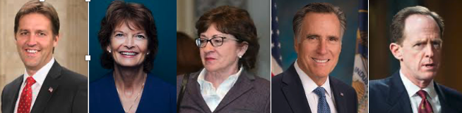 Từ trái qua phải: các TNS Ben Sasse, Lisa Murkowski, Susan Collins, Mitt Romney, Pat Toomey