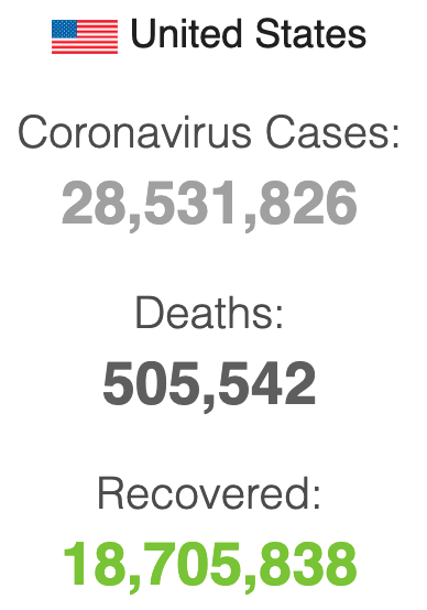 – Dịch COVID vẫn còn, nhưng bớt hoành hành nhiều. Tuy nhiên, con số tử vong đã lên tới trên nửa triệu người. Con số này thật sự không chính xác vì không phân biệt rõ rệt chết vì COVID hay chết vì nhiều bệnh khác đã có từ trước, lại bị thêm COVID.