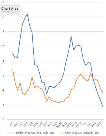 – Tỷ lệ gia tăng về số người bị nhiễm và tử vong đều tiếp tục giảm mạnh, tuy chưa thể nói đó là hậu quả của việc chích ngừa.