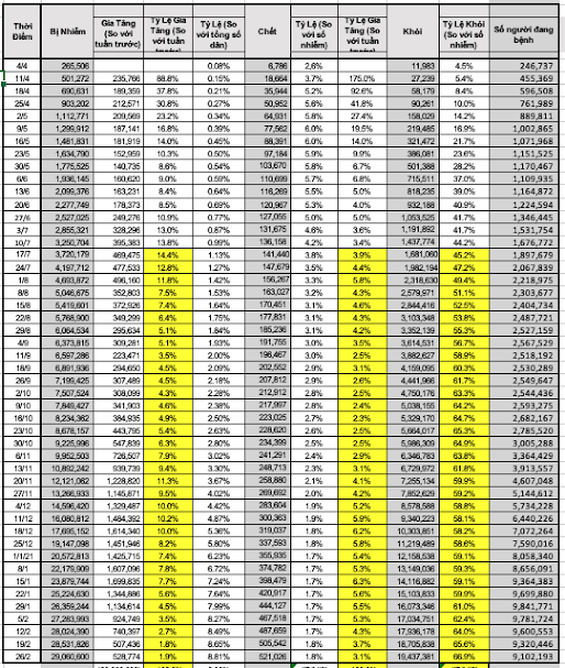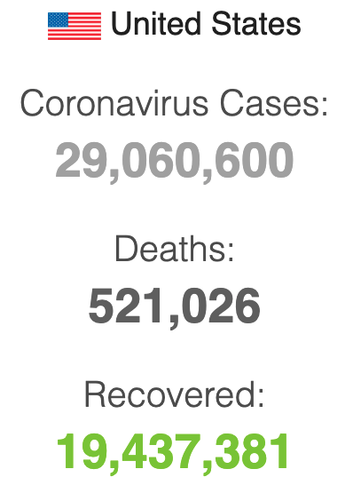 – Số người bị nhiễm đã lên tới trên 29 triệu trong khi số tử vong đã vượt qua mức 521.000 người. Nhưng tỷ lệ khỏi đã lên tới mức cao nhất, 67%.