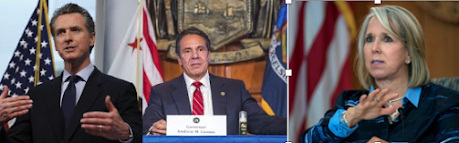 Từ trái qua phải: TĐ Newsom, TĐ Cuomo, TĐ Grisham