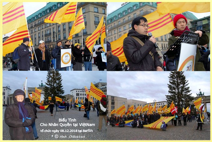 Đúng ra ngày 10 tháng 12 năm 2018, kỷ niệm 70 năm ngày công bố Tuyên Ngôn Quốc Tế Nhân Quyền vào ngày 10 tháng 12 năm 1948, nhưng vì là ngày thứ Hai đầu tuần mọi người phải đi làm nên cuộc biểu tình được tổ chức trước 2 ngày, thứ Bảy 8.12.2018. Chương trình kỷ niệm ngày Quốc Tế Nhân Quyền (QTNQ) 2018 tại thủ đô Bá Linh gồm ba phần. Biểu tình, Mít-Tinh bắt đầu từ 13h đến 15h trước cổng Brandenburg, sau đó từ 16-17h là Thánh Lễ cầu nguyện cho quê hương VN và cuối cùng là phần hội thảo với văn nghệ đấu tranh từ 18h30 đến 22h30.