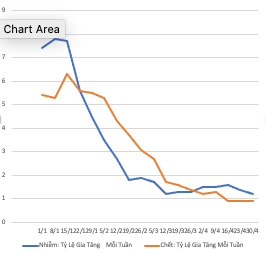 Trái với những hù dọa kinh hồn của TTDC, dịch COVID có vẻ đã ổn định từ mấy tuần qua, khi tỷ lệ gia tăng số người nhiễm và chết không thay đổi bao nhiêu, tuy chưa giảm nhiều.