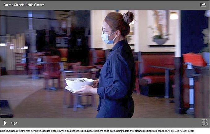 Fields Corner, một vùng đất lành của người Việt, tự hào làm chủ các doanh nghiệp địa phương. Nhưng khi sự phát triển tiếp tục, chi phí gia tăng đe dọa đến việc di dời cư dân. (Hình của Shelby Lum / BBT Boston Globe)