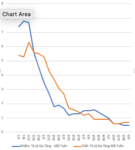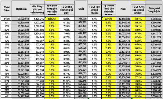 Tình hình không thay đổi gì trong tuần qua. Các tỷ lệ gia tăng vẫn như tuần trước, không tăng nhưng cũng không giảm. Số người mới bị nhiễm lên tới gần 20.000 người trong khi số tử vong trong tuần là hơn 4.000 người.