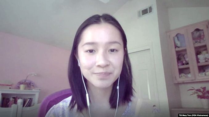 Alexandra Huynh (Huỳnh Thụy An), Khôi Nguyên Thi Ca Quốc Gia Mỹ gốc Việt khi phỏng vấn trực tuyến với VOATiengviet. (Titi Mary Tran/VOA Vietnamese)
