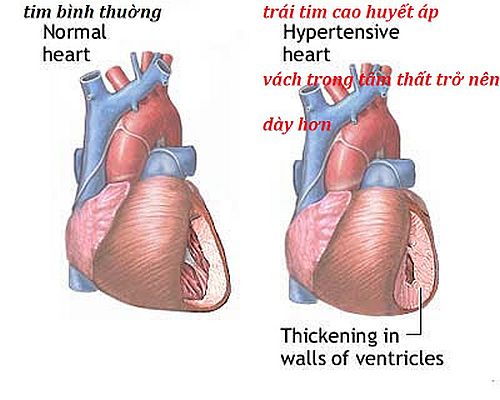 • cơn suy tim: tim phải làm việc mạnh hơn do áp suất cao lâu ngày thành cơ tim càng dày ra áp lực càng mạnh cho áp suất máu