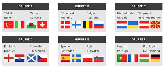 Trận đầu tiên diễn ra giữa Thuỵ Sĩ và Pháp lúc 21h00 MESZ ngày 27.6.2021.