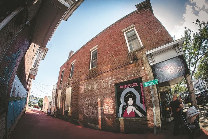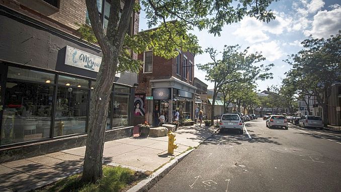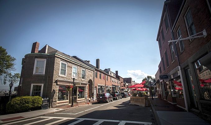 Tôi đậu xe gần tiệm bán áo quần thời trang Dress Code. Phía trước mặt là các tiệm ăn fast food, nhà hàng Mễ vắng khách vì vừa mới qua Covid, chưa hồi phục. Bên kia đường là dãy phố tường đá xanh và gạch đỏ kiểu Victorian xưa, nhà hàng Ý Bischo, nhà hàng The Cave, tiệm bán đồ kỷ niệm, tiệm bán đồ đi biển.