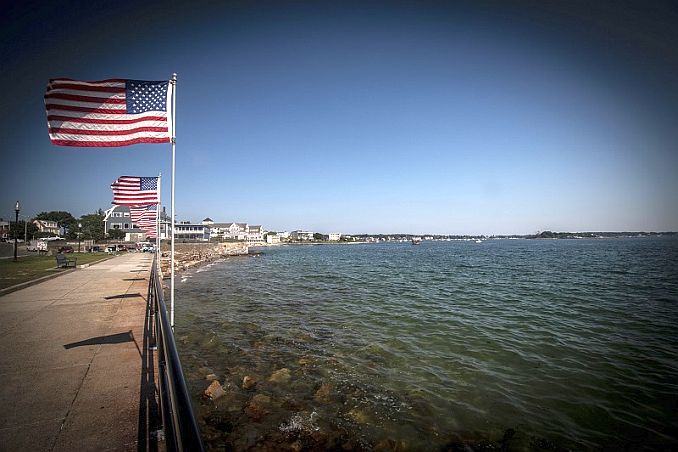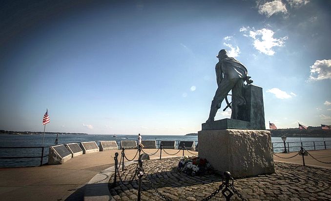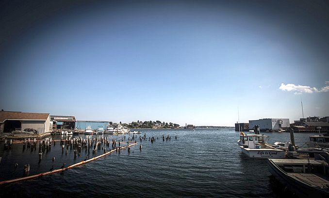 Hôm nay nóng, biển mù mờ xanh thẫm, Gloucester như một vịnh nhỏ, lọt giữa hai dải đất vòng cung tận ngoài xa, thấp thoáng những căn nhà trắng của vùng đánh cá và dân cư. Bên trái là khu tưởng niệm những ngư phủ của Gloucester, người ta thường gọi là “Người đàn ông cầm lái tàu”, còn thấy mấy tấm bảng đồng khắc nhiều tên.