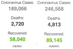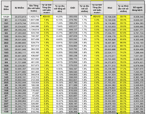 – Trong tuần qua, số người bị nhiễm lên đến hơn 910.000 người, so với 72.000 người cuối tháng 6, tăng 1.163% hay gấp gần 13 lần. Số người chết là 4.470, so với 1.765 cuối tháng 6, tăng 153% hay 2 lần rưỡi.