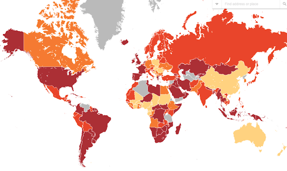 Cơ quan kiểm dịch Mỹ CDC mới ra bản đồ thế giới về tình hình dịch COVID và các biến thể.