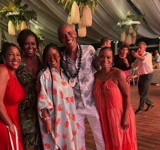 Một vài hình ảnh bị lộ ra trên các trang mạng xã hội trước khi mau mắn bị xóa, cho thấy TT Obama mặc áo như đi Hawaii, và tất cả quan khách ăn nhậu, nhẩy nhót không ngừng, chẳng một ai đeo khẩu trang gì hết.