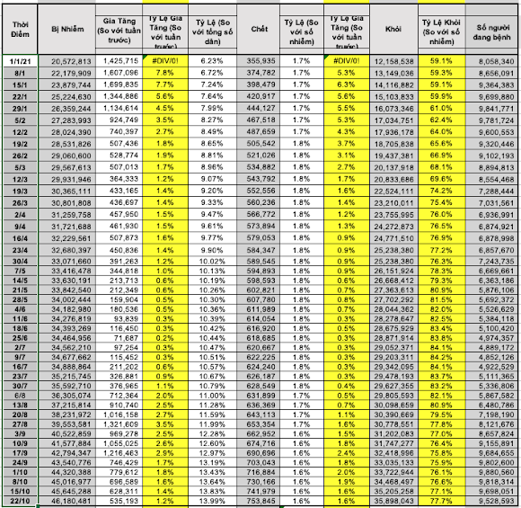 – Tỷ lệ gia tăng số người bị nhiễm giảm nhiều trong tuần rồi, chỉ còn tăng có 1,2%; trong khi tỷ lệ gia tăng số người chết không thay đổi, vẫn ở mức 1,6%.
