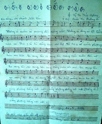 Lớn thêm chút nữa, vì hay hát, và vì thích hát lên những giai điệu của mình, mới phải gồng mình tập viết lời. Phần lời do vậy không phải là thế mạnh của em. Nhưng dù nó có ngô nghê thế nào, cũng là những cảm xúc và suy nghĩ một thời như thế.