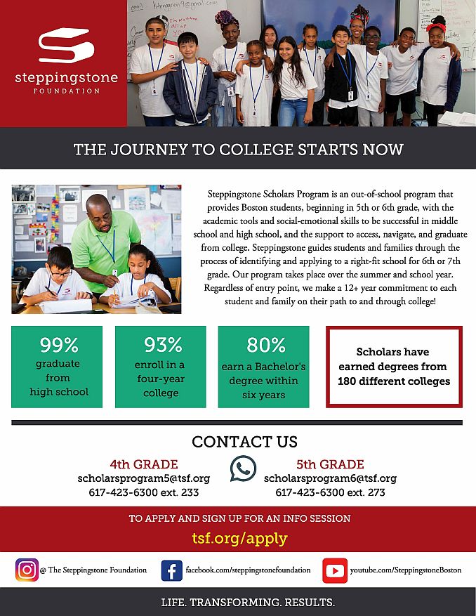 Chương trình Steppingstone là chương trình sau giờ học cho học sinh Boston, lớp 4 và lớp 5.