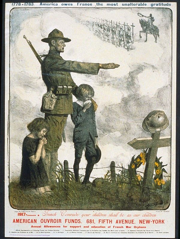 Poster cảm tạ nước Pháp đã giúp Mỹ trong cuộc chiến giành độc lập. (Nguồn: Lucien Jonas)