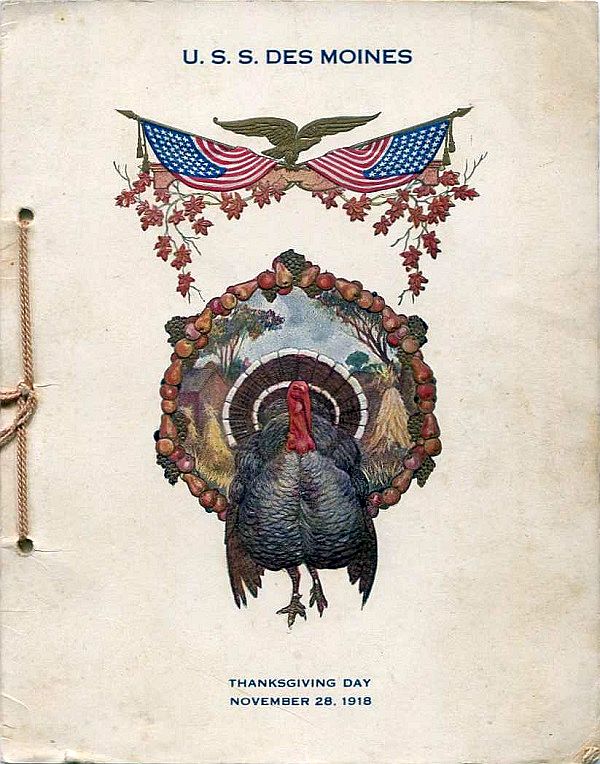 Bìa thực đơn trên chiến thuyền USS Des Moines. (Nguồn: State Archives of North Carolina)