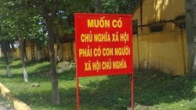 Khẩu hiệu tuyên truyền của chế độ CSVN “Muốn có chủ nghĩa xã hội, phải có con người xã hội chủ nghĩa”. (Ảnh trên mạng)