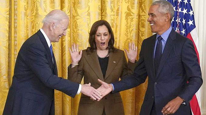 Thứ ba tuần rồi, cựu TT Obama đã đến viếng thăm Tòa Bạch Ốc, có bữa ăn trưa với cụ Biden. Trên danh nghĩa, Obama đến tham dự lễ bành trướng Obamacare gì đó. Tuy nhiên trên thực tế, ai cũng biết Obama đang cố mang uy tín cá nhân của mình trong khối cấp tiến DC, và nhất là khối dân đa đen, để cứu giúp cụ Biden đang chìm nghỉm dưới ba thước nước. Trong khi cụ lại không ngừng biểu diễn tài nói nhảm cho cả thế giới thưởng lãm.
