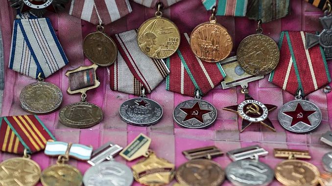 Huy chương đem bán chợ trời ở thủ đô Tbilisi, Georgia. (Ảnh: Orhan Karsli / Anadolu / Getty Images)