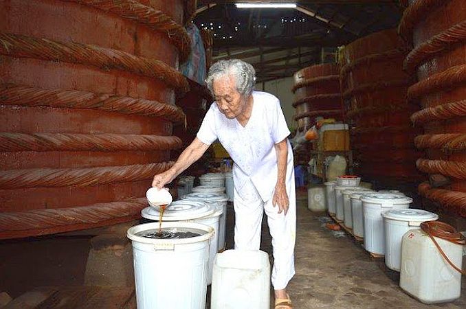 Bà Mười trong ngày quan sát và thu nước mắm cốt