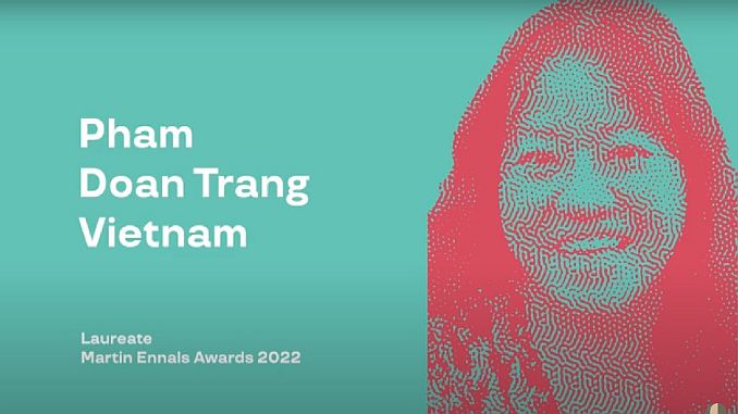 Đại diện cho con gái của mình là Phạm Đoan Trang, bà Bùi Thị Thiện Căn, năm nay 81 tuổi, đã có mặt tại lễ trao giải Martin Ennals năm 2022. Vào buổi tối ngày 2 Tháng Sáu tại Geneva, Thụy Sỹ (23:00 giờ Việt Nam), giải thưởng nhân quyền này đã xướng tên nhà hoạt động đang chịu án chín năm tù ở Hà Nội. Ông Phil Robertson, Phó giám đốc khu vực châu Á của tổ chức Human Rights Watch đồng thời là một thành viên ban giám khảo của giải thưởng nhận xét cho rằng, Phạm Đoan Trang là một người truyền lửa cho rất nhiều nhà hoạt động và nhà báo ở Việt Nam, nơi mà tự do biểu đạt bị xem là mối đe dọa.