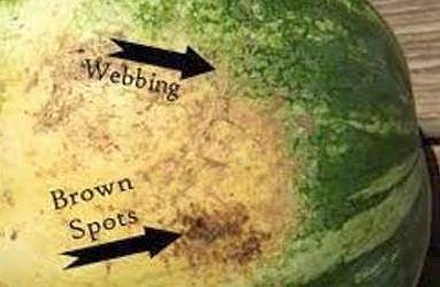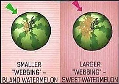 5. Trên trái dưa thường có các vết “sướt” như mạng nhện, người ta gọi là vết đường, nên chọn vùng nầy càng lớn càng tốt, thường là dấu hiệu của trái dưa ngọt.