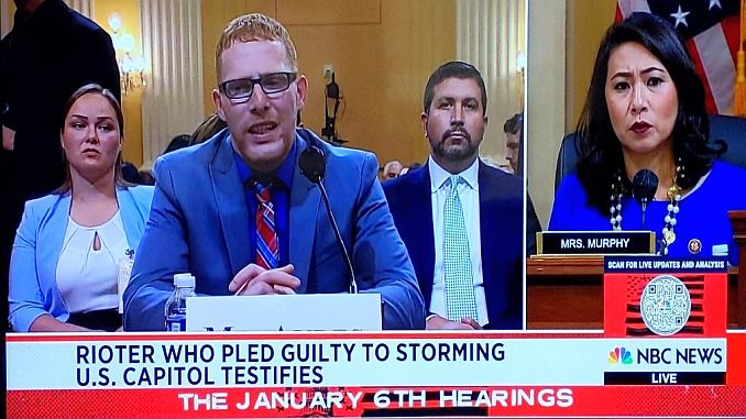 DB Stephanie Murphy của Ủy ban 6 tháng Giêng, thẩm vấn nhân chứng Stephen Ayres từ Ohio, người đã nhận tội liên quan đến vụ tấn công Điện Capitol. (Ảnh chụp màn hình)