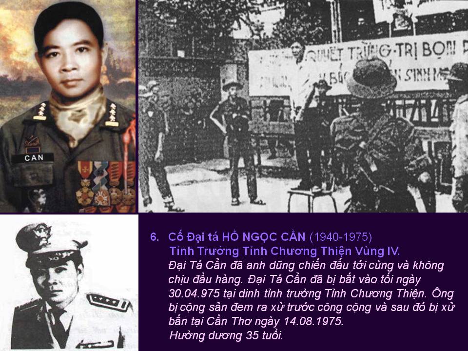 Đại Tá Cẩn bị xử bắn cùng ngày với Trung Tá Võ Văn Đường (Trưởng Tỵ Cảnh Sát) và Đại Úy Phạm Văn Bé (Đại Đội Trưởng Trinh sát). Quân sử Việt Nam Cọng Hòa hơn 20 năm ghi nhận biết bao vị anh hùng. Tại miền Tây, không thiếu những bậc anh hào lưu danh muôn thuở.