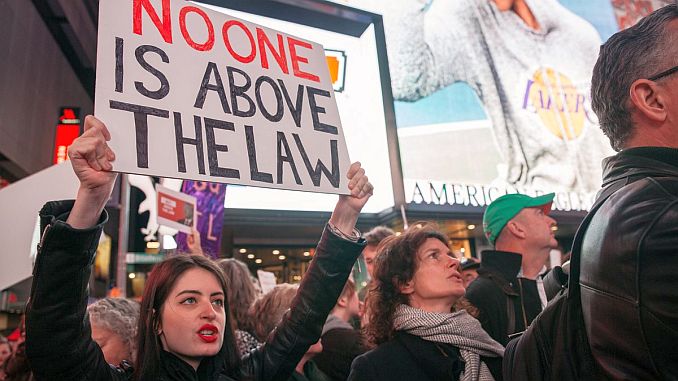 Câu hô hào đó được dịch từ tiếng Mỹ là “no one is above the law”.