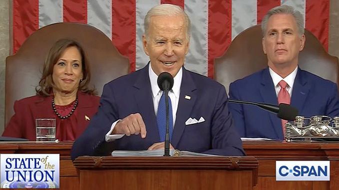 Vài giờ trước lúc đọc diễn văn, ông Biden đăng tweet liệt kê bảy thành tích nổi bật về kinh tế trong hai năm qua mà ông gọi là “phá kỷ lục.” Đó là (1) số việc làm tăng trong suốt hai năm, (2) tỉ lệ thất nghiệp thấp nhất trong hơn 50 năm, (3) sản xuất công nghiệp hồi phục với tốc độ nhanh nhất trong 40 năm, (4) số doanh nghiệp nhỏ được thành lập trong hai năm qua nhiều nhất trong lịch sử, (5) thâm hụt ngân sách giảm ở mức kỷ lục, (6) giá xăng giảm nhanh nhất trong tám năm, và (7) mức lạm phát hàng năm giảm trong suốt sáu tháng.