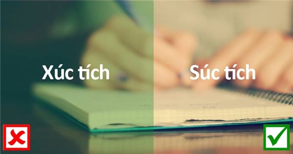 Đây là từ thường được các giáo viên phê trong bài văn của các bạn. Nhiều người cho rằng “xúc tích” mới là chính xác bởi nếu giải thích thì “xúc” là “xúc cảm”, “tích” là “tích trữ”. Như vậy “xúc tích” là tích trữ nhiều xúc cảm, như vậy một bài văn “xúc tích” là một bài văn ngắn nhưng nói lên nhiều điều. Thế nhưng, từ này lại là từ sai chính tả.