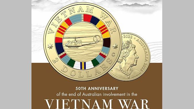 Hôm 6/4, Royal Australia Mint phát hành tiền xu mệnh giá 2 đôla Australia, nhân kỷ niệm 50 năm kể từ ngày Australia đưa quân tham chiến trong cuộc Chiến tranh Việt Nam vào năm 1973, hỗ trợ đồng minh Hoa Kỳ và Việt Nam Cộng hòa.