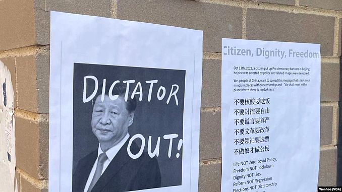 Vào tháng 10, một số sinh viên Trung Quốc tại trường đại học cũng dán áp phích trong khuôn viên trường phản đối việc tái đắc cử của nhà lãnh đạo Trung Quốc Tập Cận Bình. Nhưng những tấm áp phích đó cũng bị xé bỏ.