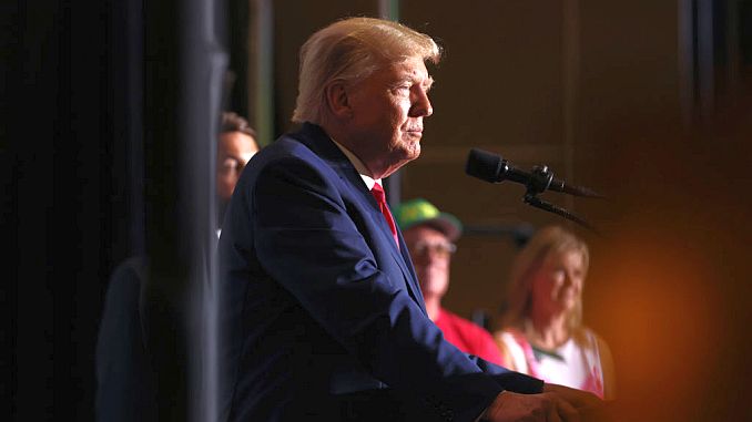 Donald Trump trong chiến dịch tranh cử ‘Farmers for Trump’ tại Council Bluffs, Iowa ngày 7 Tháng Bảy 2023 (Ảnh: Scott Olson/Getty Images)
