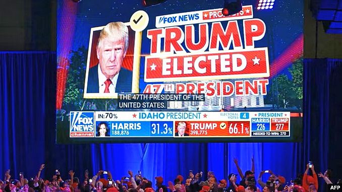 Trên khắp đất nước, tại những nơi mà hầu hết các phiếu bầu đã được kiểm – khoảng 2.200 quận trên toàn quốc – biên độ của ông Trump cao hơn 5 điểm so với năm 2020.