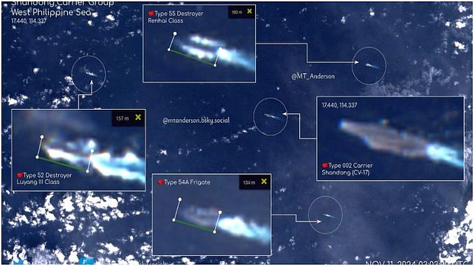 Hôm 11/11/2024, hàng không mẫu hạm Sơn Đông được phát hiện trên vùng biển Philippines (Ảnh: Twitter).