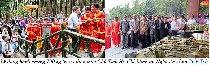Thảo nào mà liên tiếp trong nhiều năm qua tỉnh Nghệ An đều có tổ chức lễ dâng bánh chưng (nặng hàng ngàn ký lô) để tri ân thân mẫu bác Hồ và tổ chức bắn pháo hoa tại Quảng Trường Hồ Chí Minh để mừng Đảng, mừng Xuân.