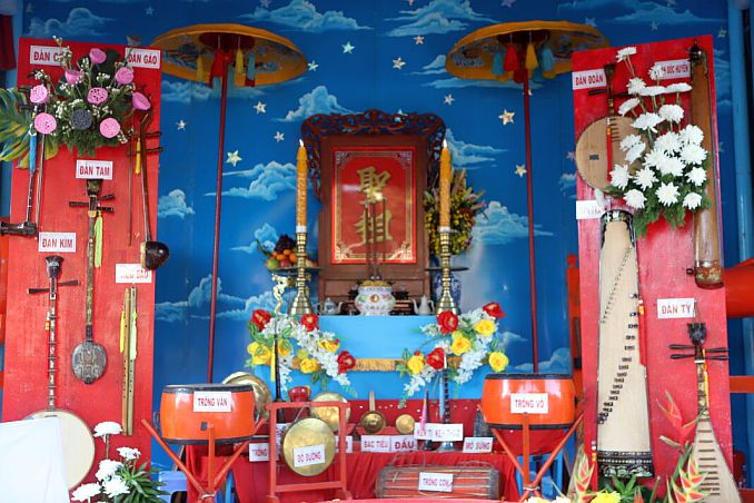 Gian triển lãm nhạc cụ ban nhạc lễ của đạo Cao Đài. (Hình: Thanh Trang)