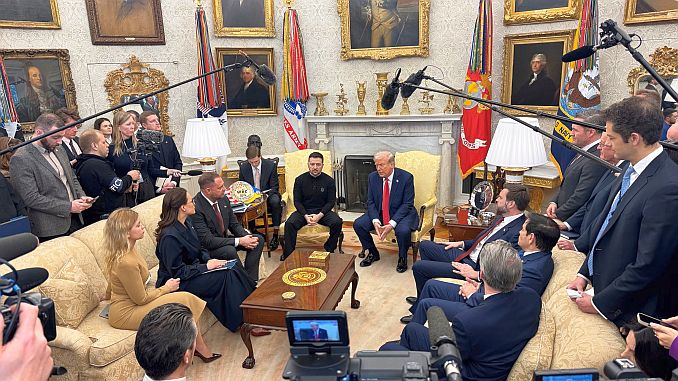 Diễn tiến câu chuyện hoàn toàn bất ngờ. Theo chương trình dự tính, thì ba người ngồi nói chuyện ngoại giao lịch sự chừng 15 phút trước báo chí, sau đó mời vào phòng họp kín, rồi cùng ăn trưa, sau đó sẽ là buổi lễ chính thức ký thỏa thuận hợp tác khai thác tài nguyên Ukraine, và cuối cùng họp báo chung. Không ai ngờ câu chuyện đổ bể nhanh chóng, buổi họp, bữa ăn trưa, lễ ký thỏa ước, họp báo, tất cả bị hủy bỏ. Có tin đây là chuyện Zelensky đã cố tình tính toán từ trước: tới Washington, nhưng sẽ không ký và công khai công kích Trump trước quốc tế. Nếu quả đúng vậy thì cuộc chiến tại Ukraine sẽ còn kéo dài rất lâu, Ukraine sẽ còn chết nhiều và bị tàn phá nhiều nếu chưa chết ngay vì mất viện trợ Mỹ. Zelensky có vẻ tháu cáy Mỹ sẽ không dám cắt viện trợ.